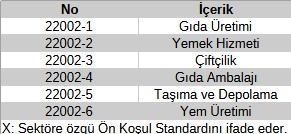 ISO 22002-X: Sektöre Özgü Yayınlanmış 6 adet ISO 22002 Standardı mevcuttur.